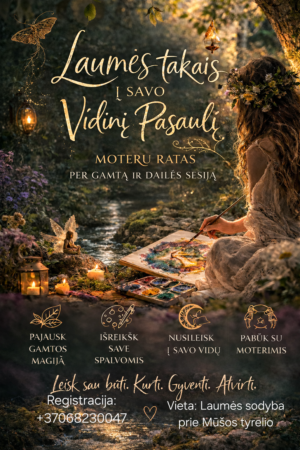 Gamta – tai mūsų veidrodis. Joje slypi švelnumas ir laukinė jėga, ramybė ir kūryba – viskas, kas gyvena ir mumyse. Per buvimą gamtoje mes grįžtame prie savo esmės, prie natūralaus moteriškumo ritmo.